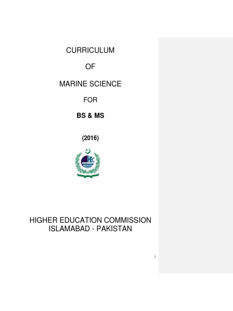 Criculum Marine Sciences 2016 Hec Marine Sciences Draft Docx