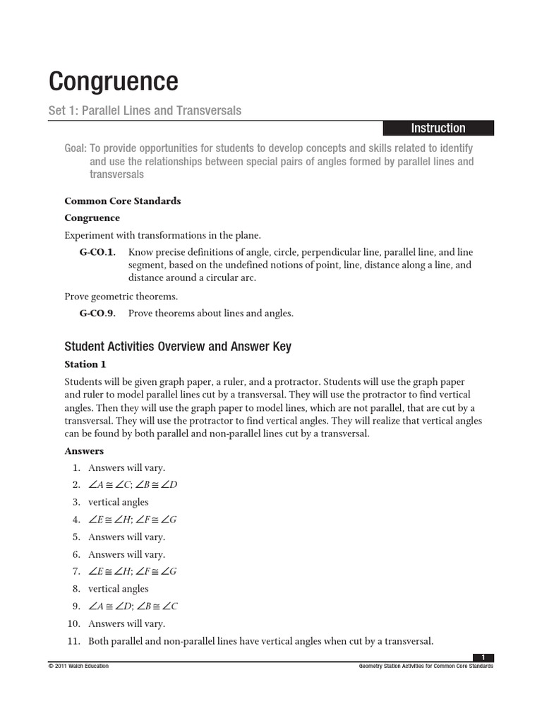 Worksheet On Parallel Lines And Transversals Geometry Answer Key