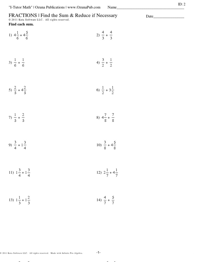 Add Subtracting Fractions Pdf Kuta Software Infinite Pre Algebra