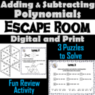Adding And Subtracting Polynomials Activity Math Escape Room