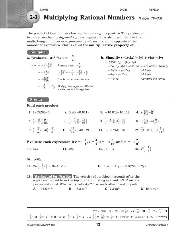 Glencoe Algebra 1 Worksheets Unit 6 Printable Worksheets And