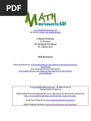 Addition And Subtraction Of Polynomials Worksheets Teaching