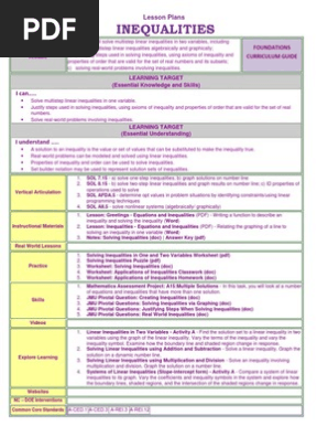 1 Inequalities Add Subtract Lesson Plans Inequality