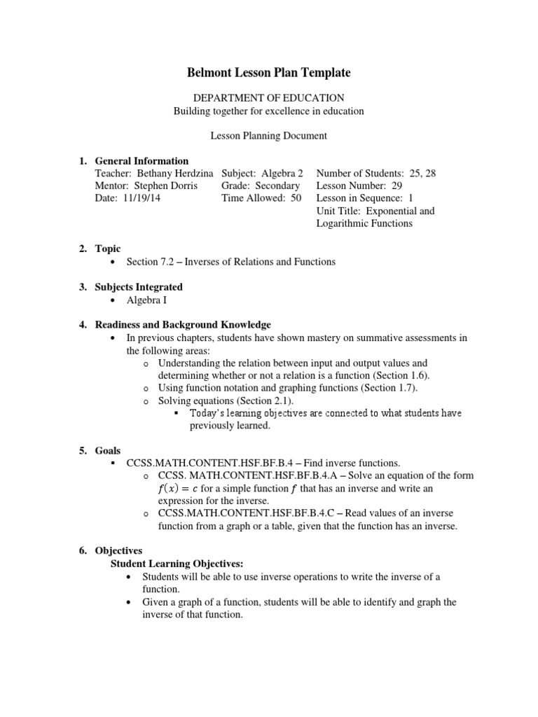 Section 7 2 Lesson Plan Function Mathematics Lesson Plan