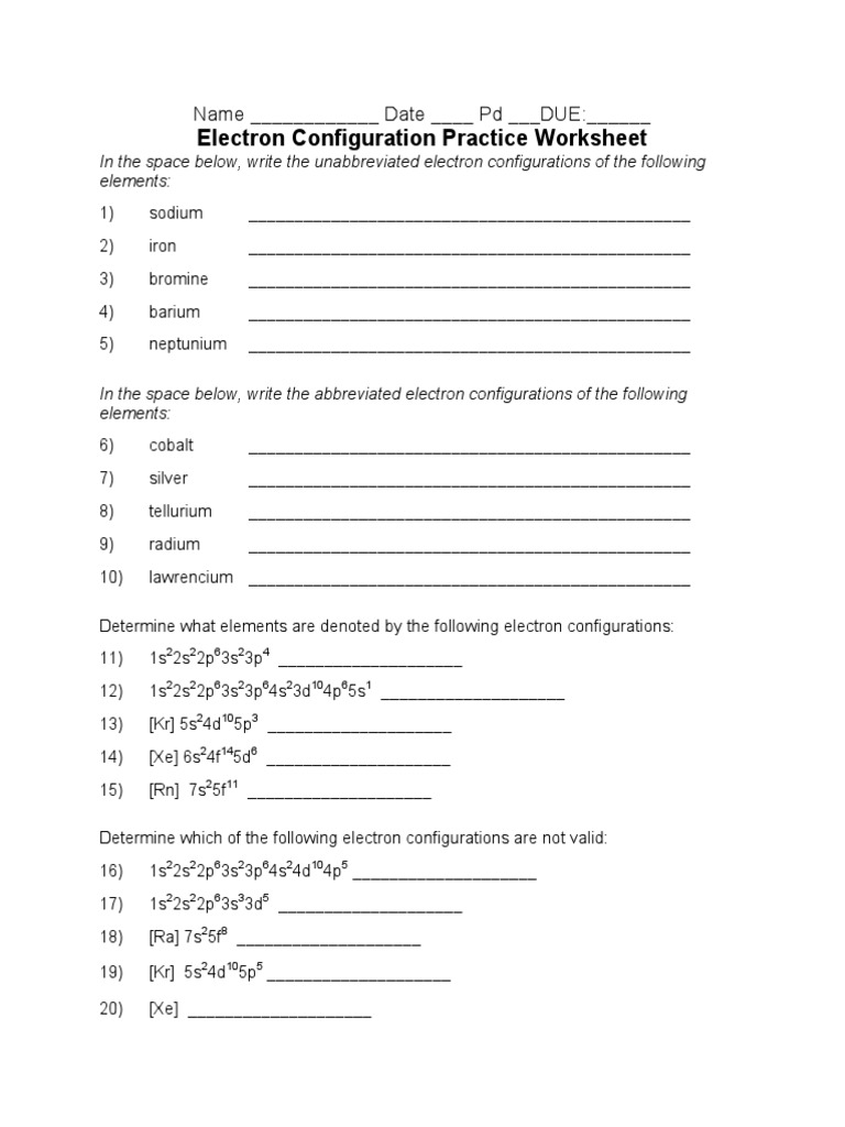 Electron Configuration Practice Worksheet