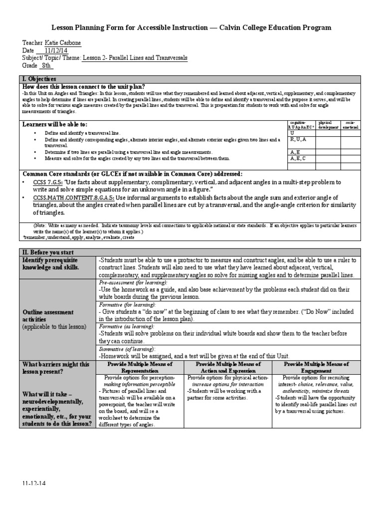 Lesson 2 Parallel Lines And Transversals Angle Lesson Plan