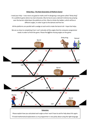 Dinky King Parallel Lines Angles Questions Teaching Resources