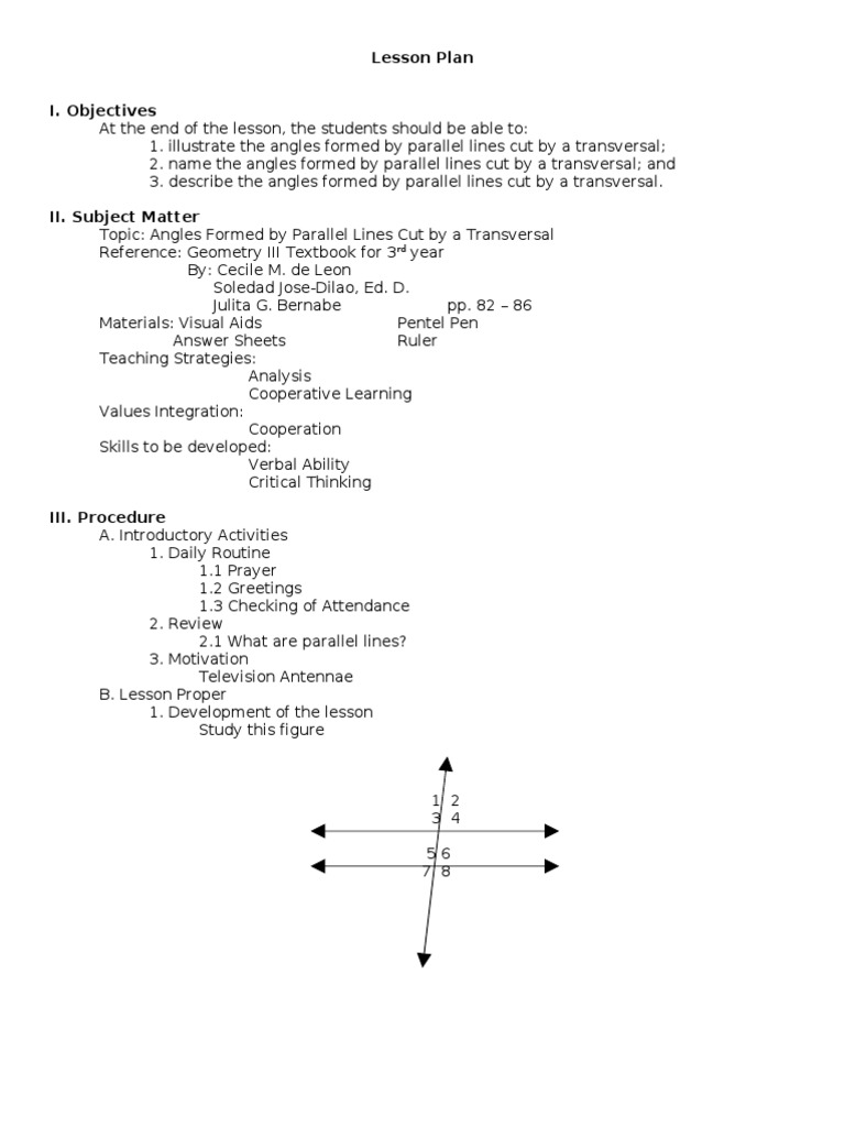 Lesson 2 Parallel Lines And Transversals Angle Lesson Plan