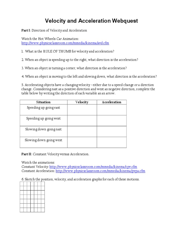 Velocity And Acceleration Practice Problems Worksheet Printable