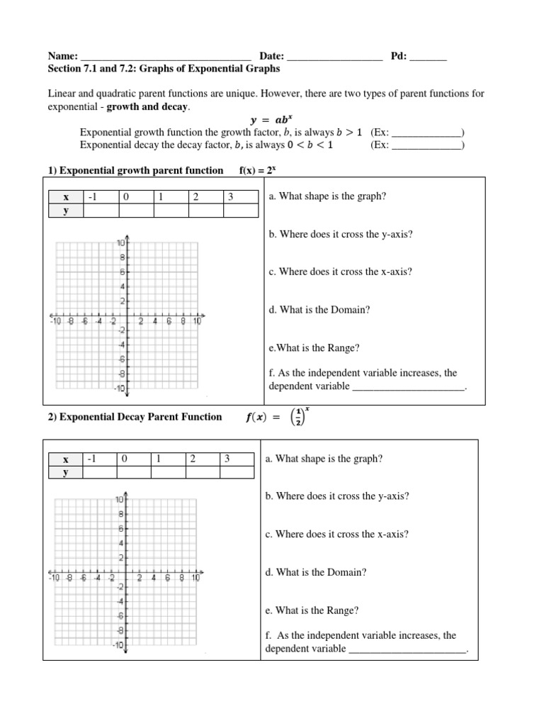 Exponential Growth Functions Worksheet Printable Worksheets And
