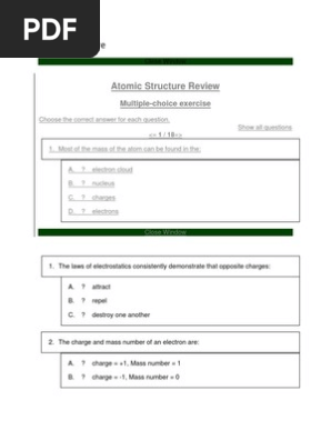 Answers To Review Questions For Atomic Theory Quiz 1 Pages 1 8