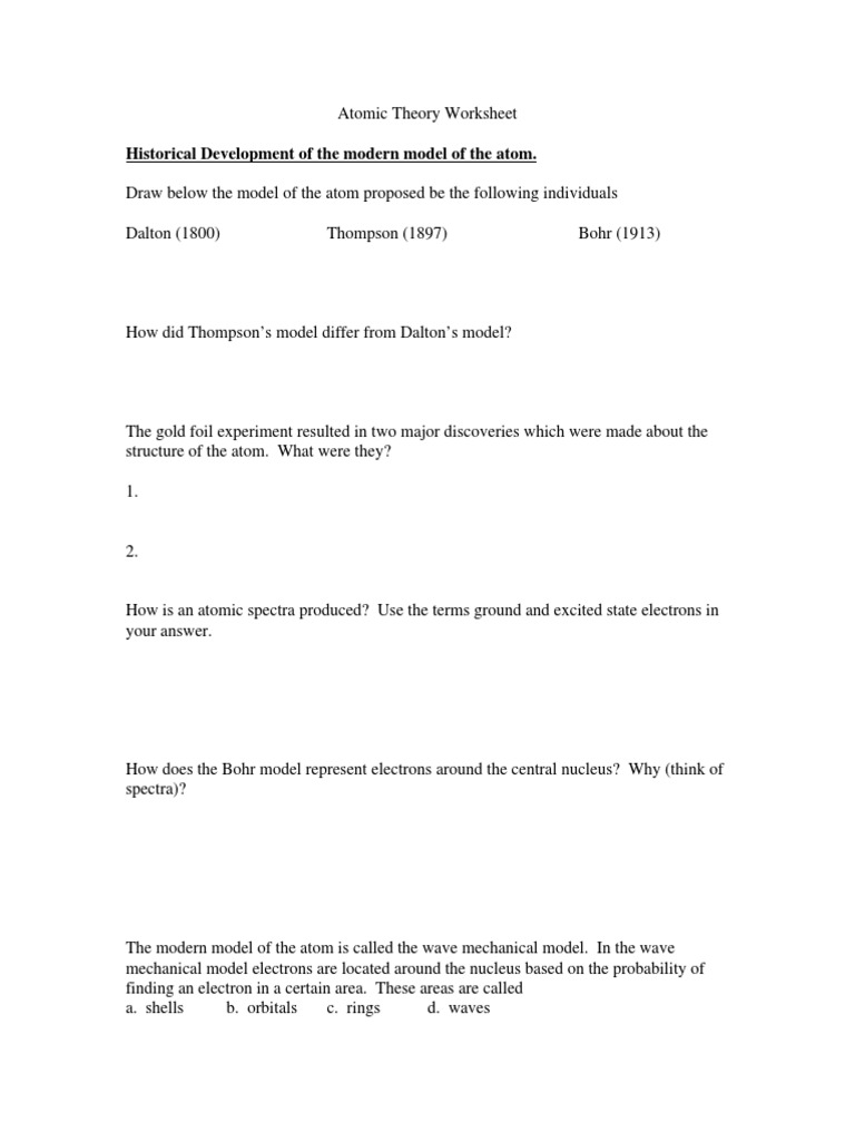 Answer Key Of Worksheet History Of An Atom