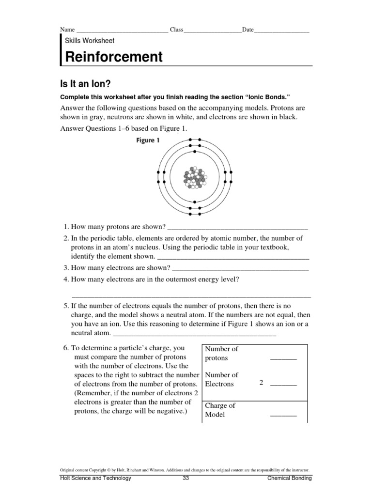 Reinforcement Worksheetionicbonding Ion Proton Free 30 Day
