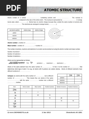 Atoms And Atomic Structure Worksheet With Images Atomic