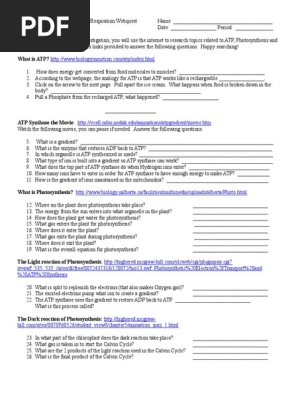 Atp Photosynthesis And Cell Respiration Web Quest Photosynthesis