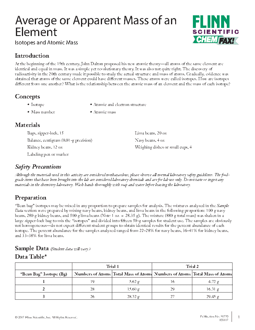 Lab Isotopes And Atomic Mass Science Skills Chemistry