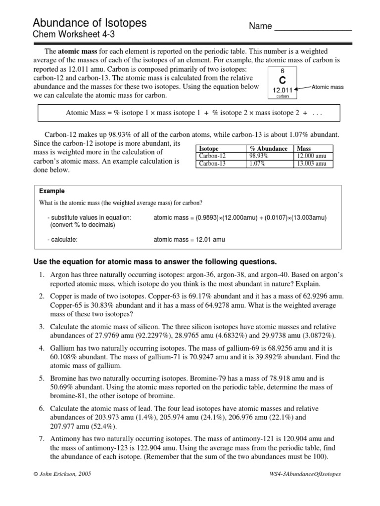 Abundance Of Isotopes Worksheet Atomic Mass Unit Isotope