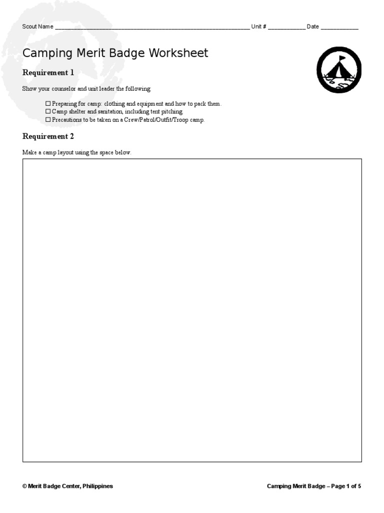 Camping Merit Badge Worksheet Requirements