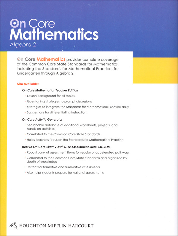 On Core Math Houghton Mifflin Harcourt Grade 9 12 Algebra 2