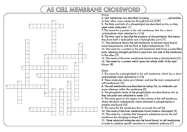 A Level Biology Crossword Pack On Cell Membrane Structure And