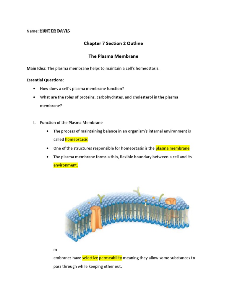 Chapter 7 Section 2 Outline Cell Membrane Lipid Bilayer