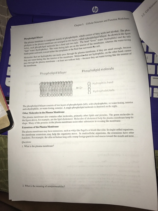 Chapter 3 Cell Structure And Function Worksheet Answers