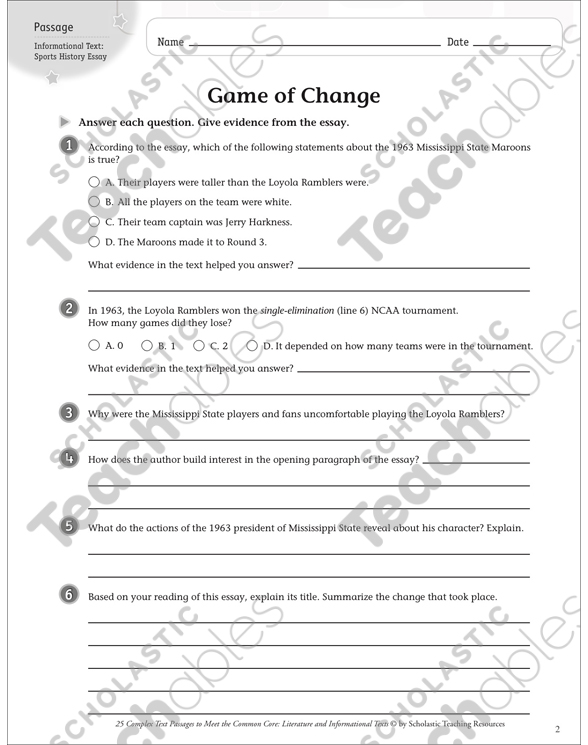 Game Of Change Text Questions Printable Texts And Skills Sheets