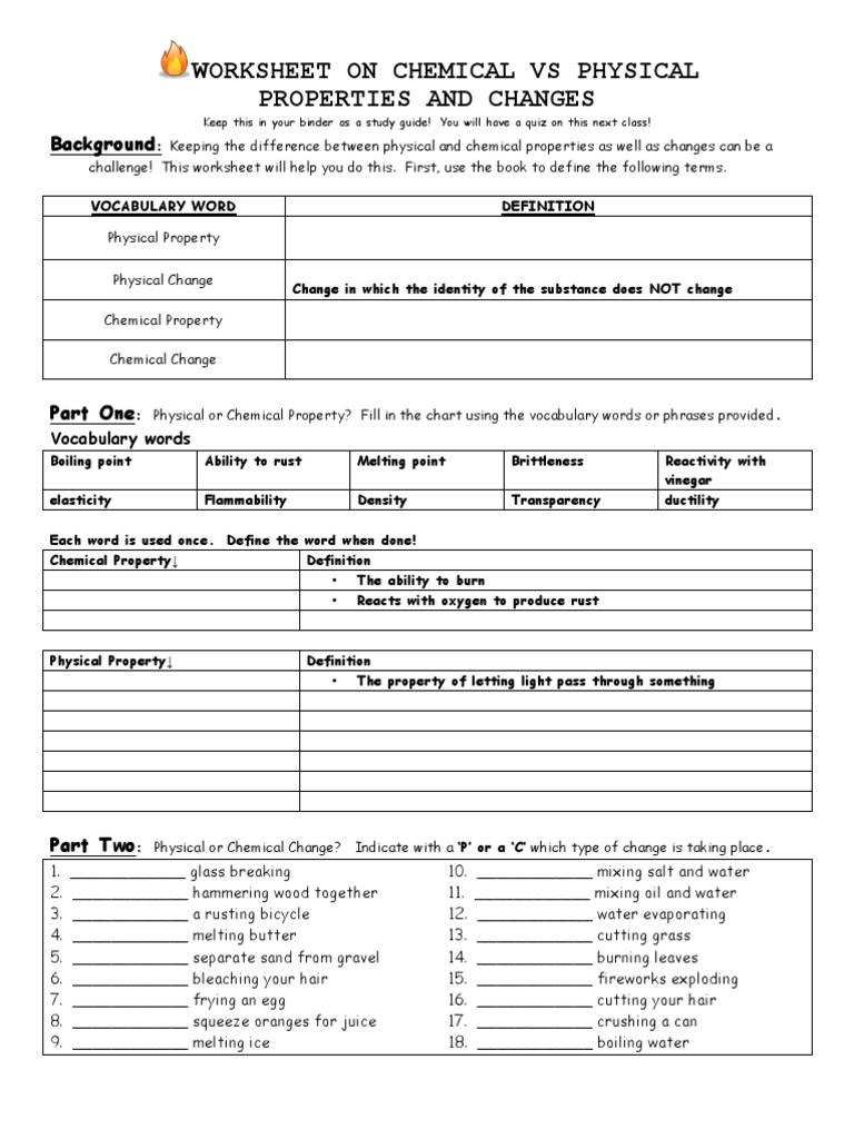 Unit 2 Physical And Chemical Change Worksheet Chemical