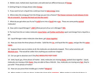 Worksheet For Bill Nye Phases Of Matter Video Differentiated
