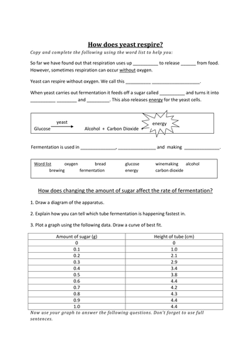Anaerobic Respiration In Yeast Investigation Instruction Sheet