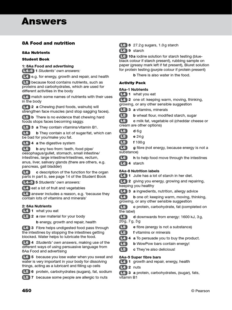 Yr 8 Complete Answers Pdf Digestion Carbohydrates Free 30