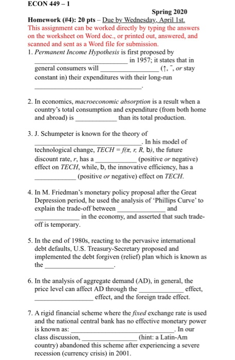 Solved Econ 449 1 Spring 2020 Homework 4 20 Pts Due