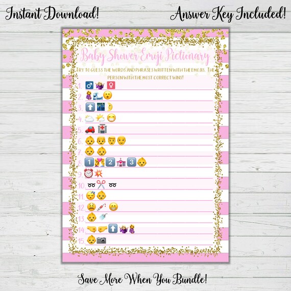 Emoji Pictionary Baby Shower Game Pink Gold Confetti Baby Etsy