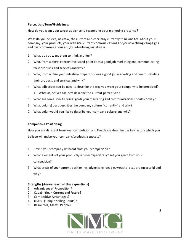 The Marketing Brief Worksheet Developed By Napier Marketing Group