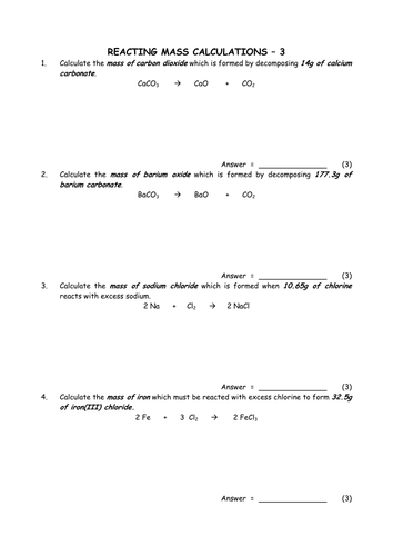 Chemistry Reacting Mass Calculations Collection Teaching Resources