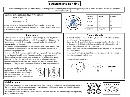 Gcse Chemistry Bonding And Structure Summary Notes Teaching