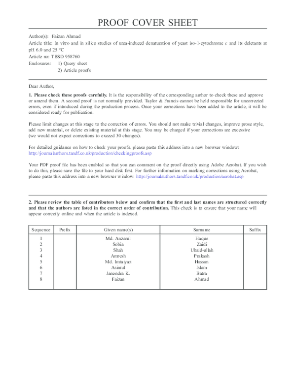 Pdf In Vitro And In Silico Studies Of Urea Induced Denaturation