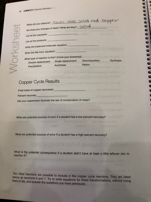 Chema 2 1175 General Chemistry 11 Worksheet Lab 9 Chegg Com