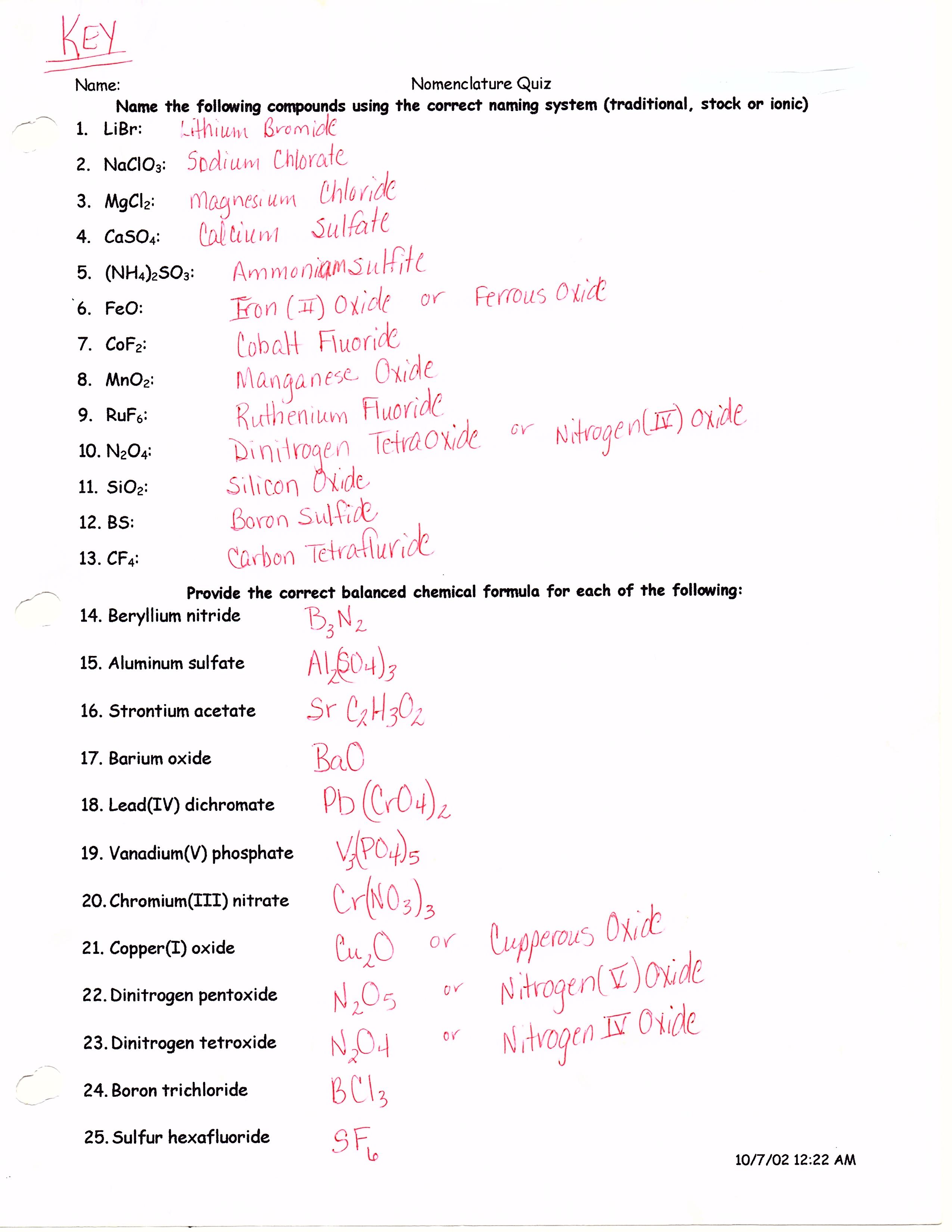Chem215 Engelhardt Key For Molecular True Formulas Worksheet