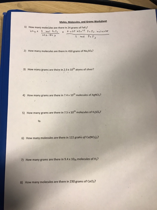 Moles Molecules And Grams Worksheet Answers With Work Worksheet List