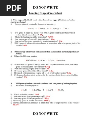 Limiting Reagent Worksheet Answers Chemical Reactions Sodium