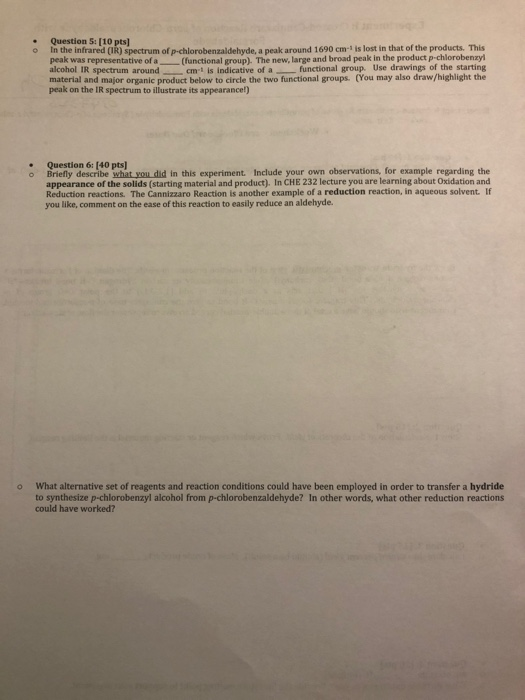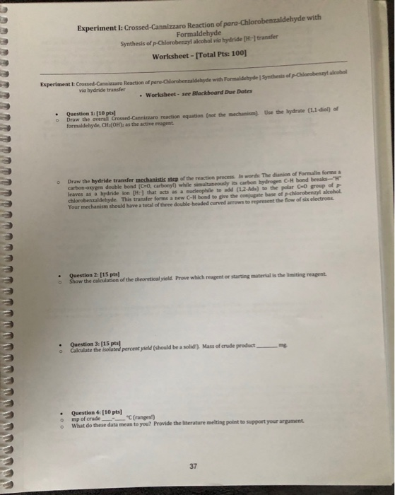 Solved Experiment I Crossed Cannizzaro Reaction Of Para
