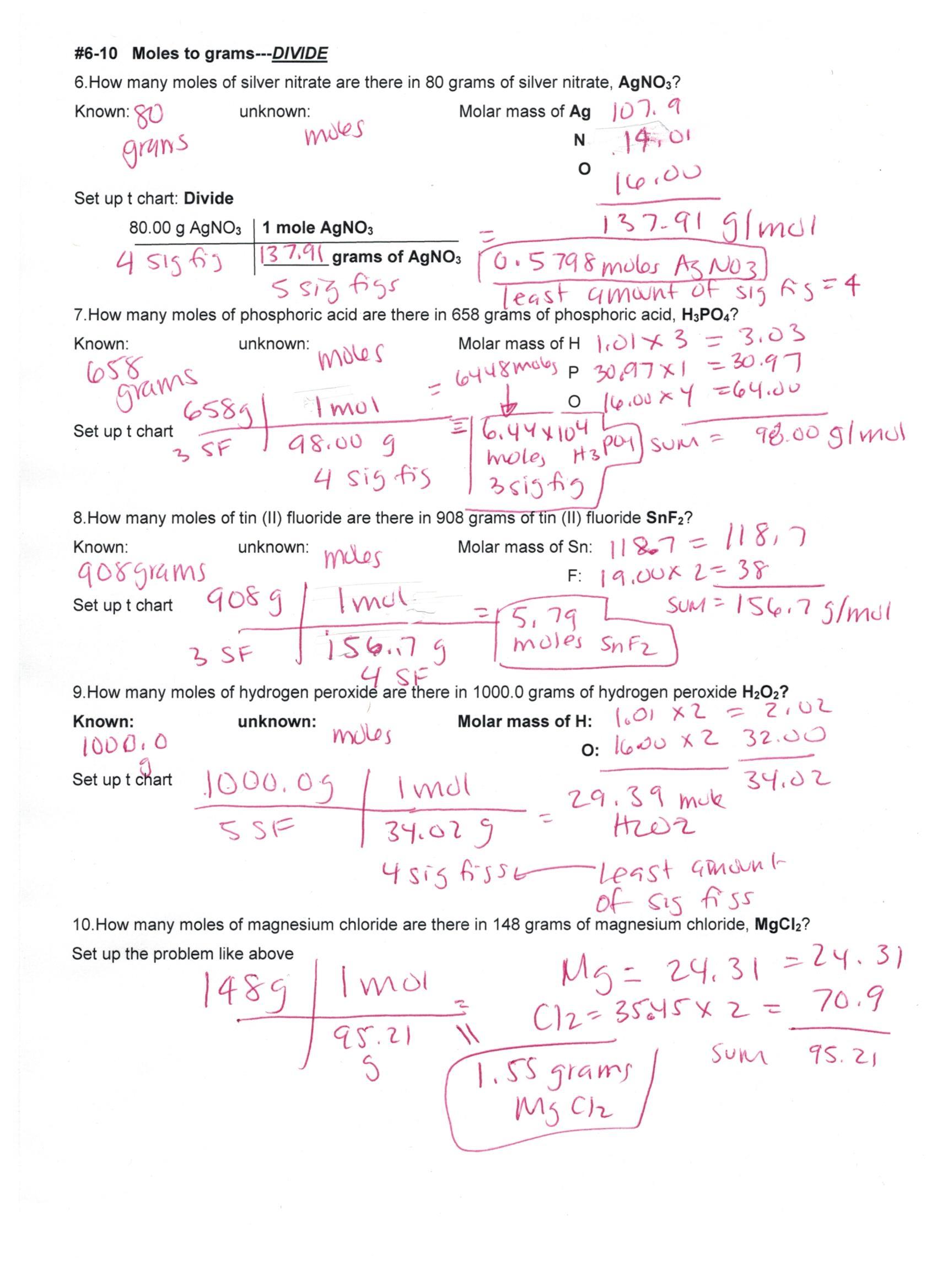 Chem 115 Pogil Worksheet Week 4 Moles Stoichiometry Answers