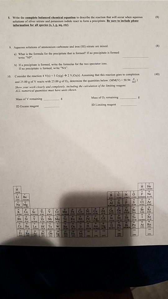 Final Exam Worksheet A Chemistry 100 Spring 2009