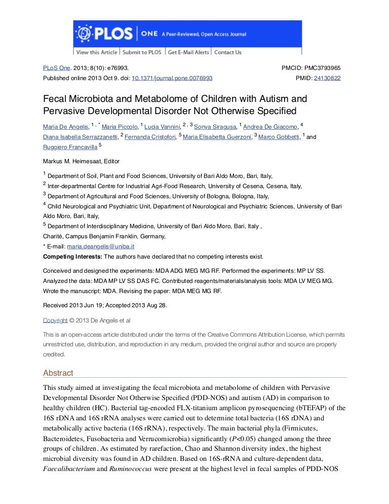 Pdf Fecal Microbiota And Metabolome Of Children With Autism And