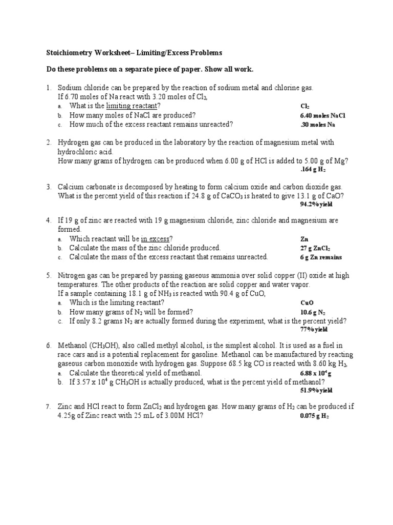 Chemistry Limiting Reagent Worksheet Printable Worksheets And