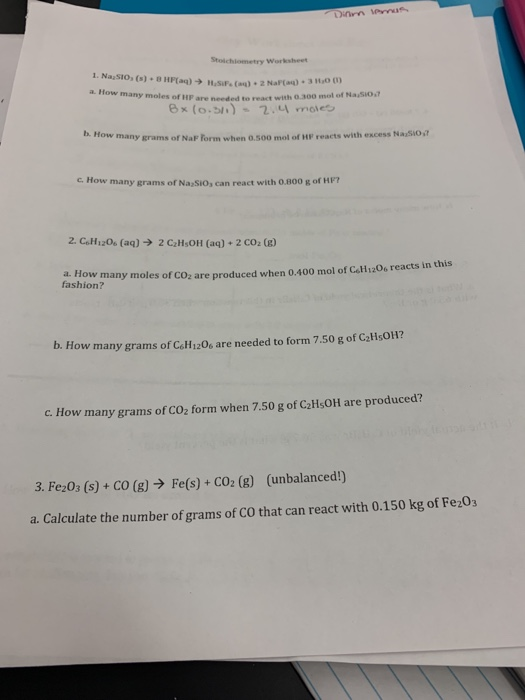 Solved Dinm Emun Stoichjometry Worksheet 1 Nasio S Bh