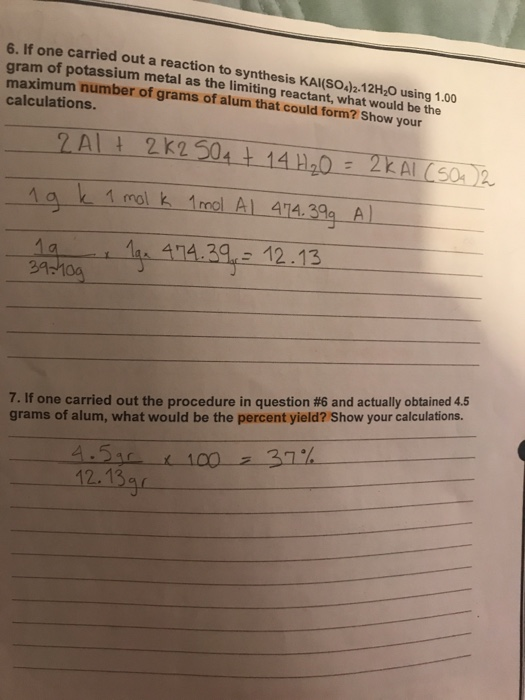 Most Common Chemistry Final Exam Question Limiting Reactants