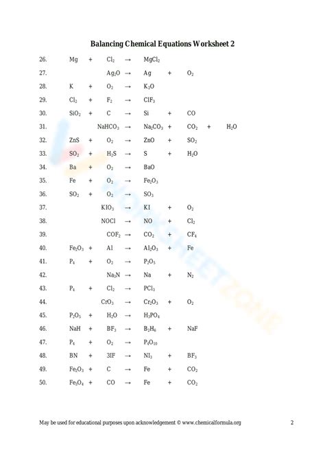 Balancing Chemical Equations Worksheet Word Document Printable