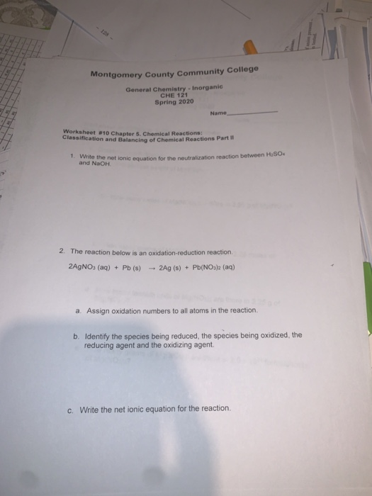 Classification Of Chemical Reactions Chm 02 Worksheet 2